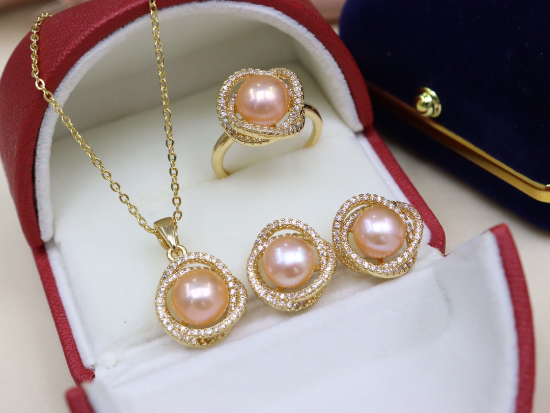 天然淡水珠8-9mm,金色、黑色、灰色都是加色的,其他颜色都是天然的。 一套四件38美元,满$200包邮。 ps:纯天然淡水珠微瑕,无暇不成珠,介意者慎拍