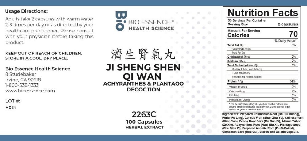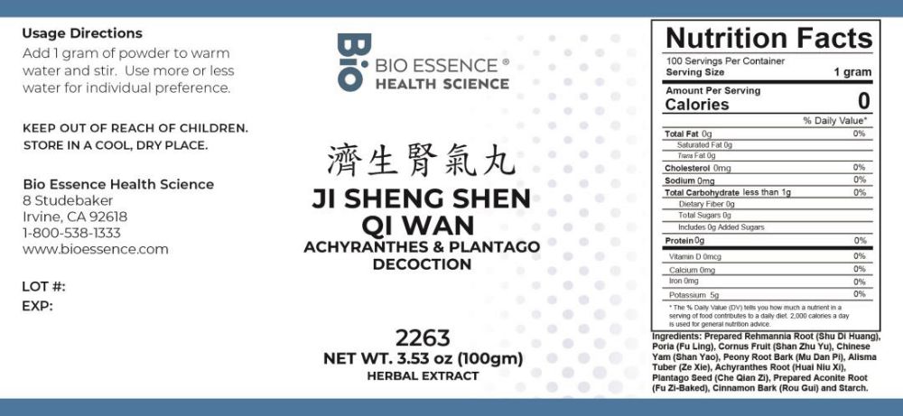單位大小 100克瓶 / 100粒(50克)瓶 提取比例 5:1 成分:車前子,茯苓,附子(炙),淮牛膝,牡丹皮,肉桂,山藥,山茱萸 熟地黃,澤瀉