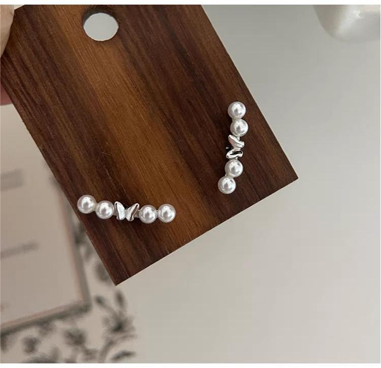 蒂奇S925银蝴蝶仿珍珠耳钉