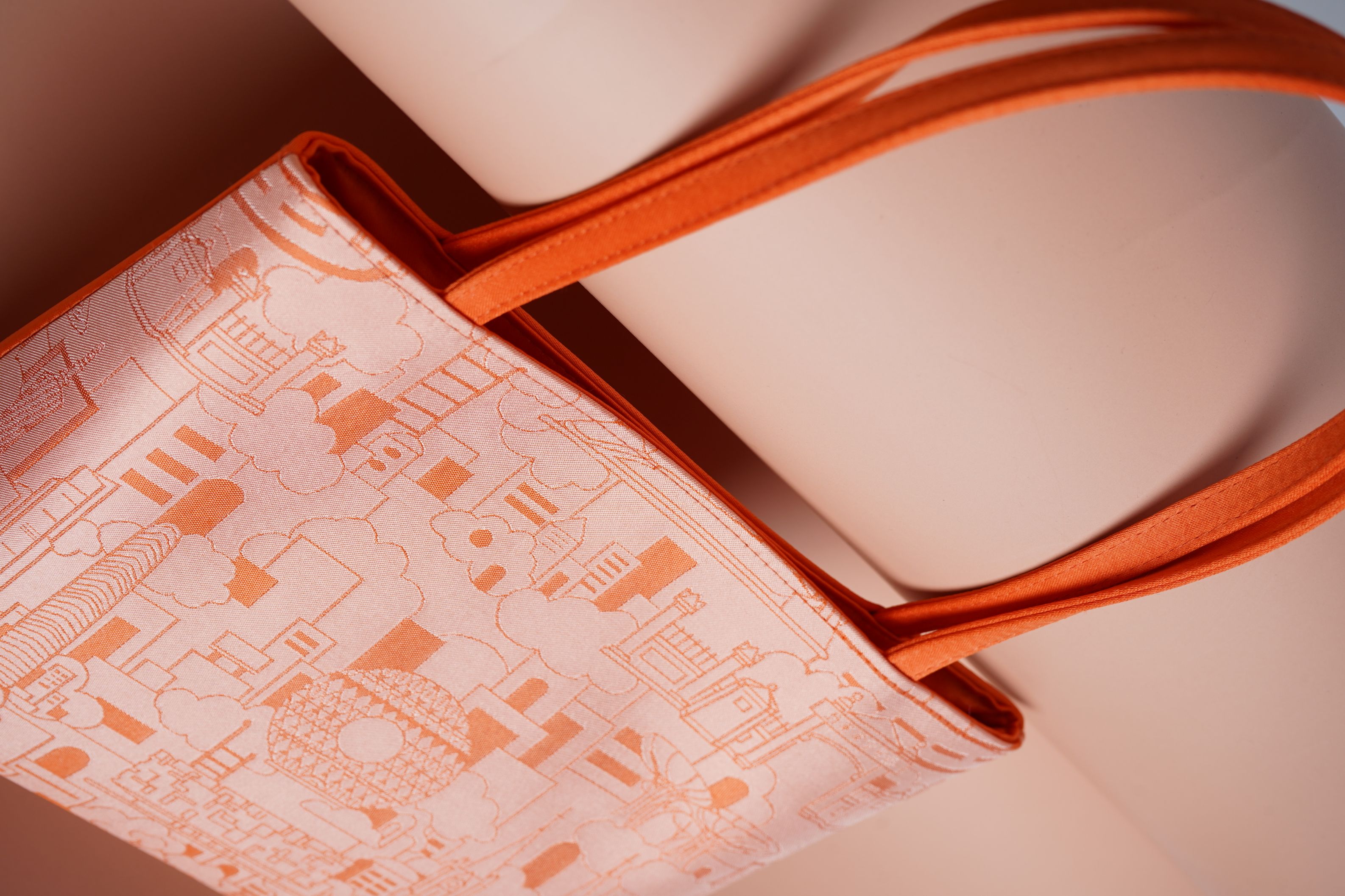 City walk—广州尺寸:20.5cmX17.5cmx6cm颜色:阳光-黄材质:100%桑蚕丝+100%聚酯纤维面料工艺:色织提花 设计元素:广州圆大厦,广州塔,圣心大教堂,猎德大桥,广州大剧院,孙中山大元帅府,花城广场,西塔,东塔,广州博物馆等标志性建筑 颜色说明:生活在广州的人,如果稍微留意就会发现,广州民国时期的很多建筑都是黄色的——孙中山大元帅府,鲁迅纪念馆,中大天文台旧址等。在1935年1月份,广州市正式通过决议,决定广州市的市色为“黄色”。设计取橙黄色调既承载又炎黄历史,又不失城市的活力与朝气。