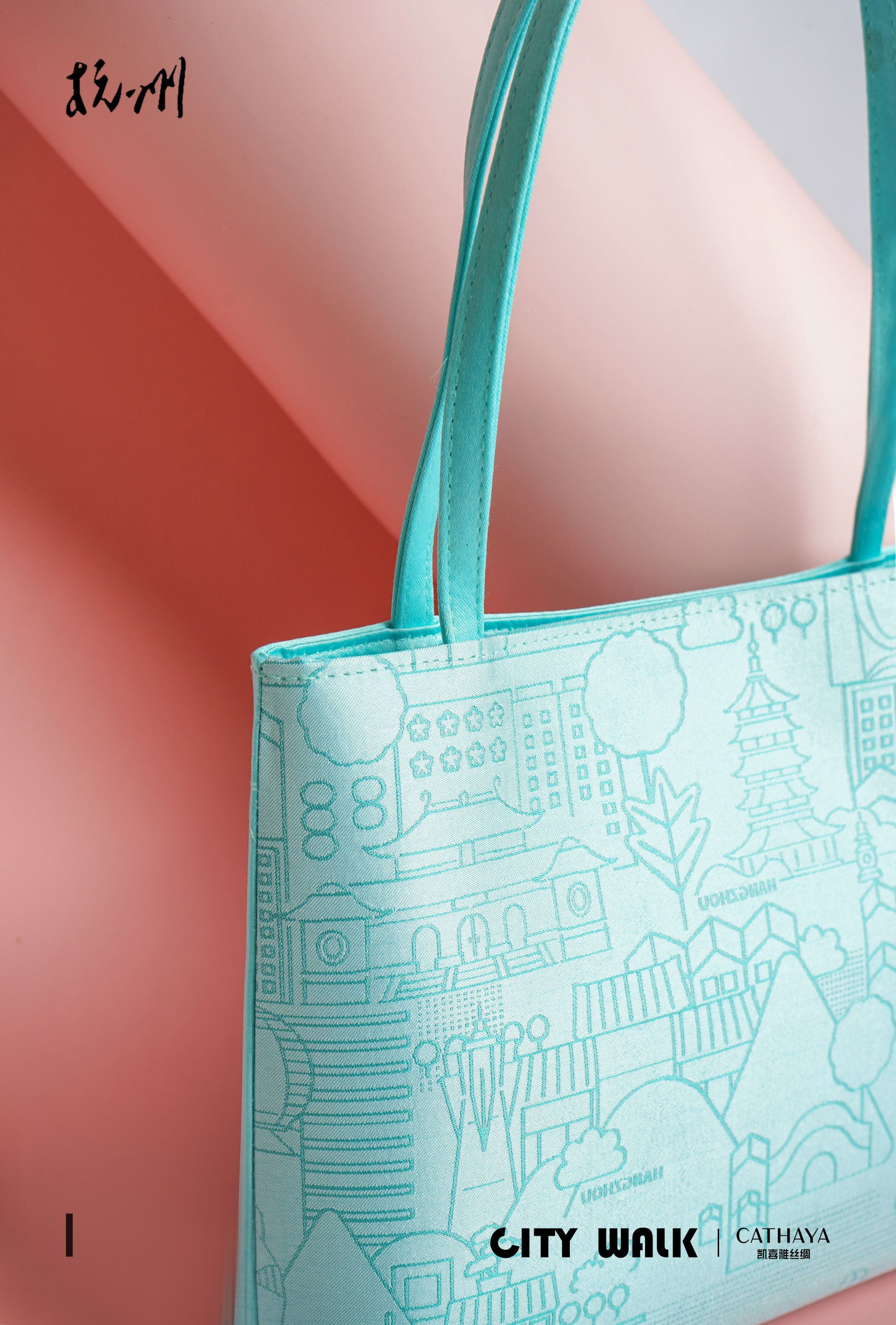 CITYWALK】 系列真丝手包 设计以丝绸之路上的城市—西安,北京,杭州,上海,广州为背景,用一种现代语言串联起来——City walk,是一种城市微旅游方式。包型款式休闲,即可手挎又可单肩背,是城市漫步的必备选择。 “让我看看你的城市面孔,我就能说出这个城市在追求什么文化”。每一个城市都以它不同的色调、形体与特色带给人们不同的感受。每款包都配有独特的城市颜色:北京—中国红,上海—霓虹紫,杭州—西子绿,西安—古都赭,广州—阳光黄。 此系列包承载了城市的历史和记忆,在这里能感受到城市的肌理、发展的脉络。